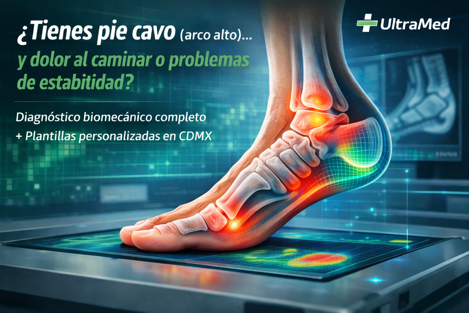 En UltraMed realizamos estudio de pie y postura, análisis biomecánico y revisión de la forma en que distribuyes carga durante la marcha, con el fin de diseñar un tratamiento más preciso.